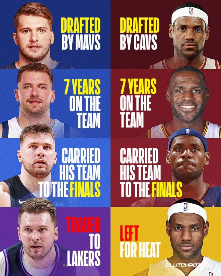- 東契奇老詹生涯前七季很類似:被母隊選中&效力七年 進總決後離開
