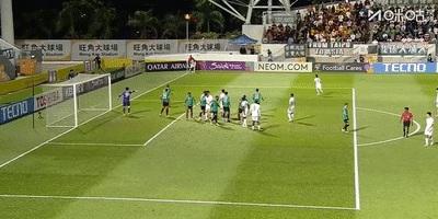 易邊再戰,下半場剛剛開場兩分鍾,大埔前場右側開出角球,國安禁區內防守漏人,馬卡雷拿高高躍起頭球攻門,好在將球頂偏。