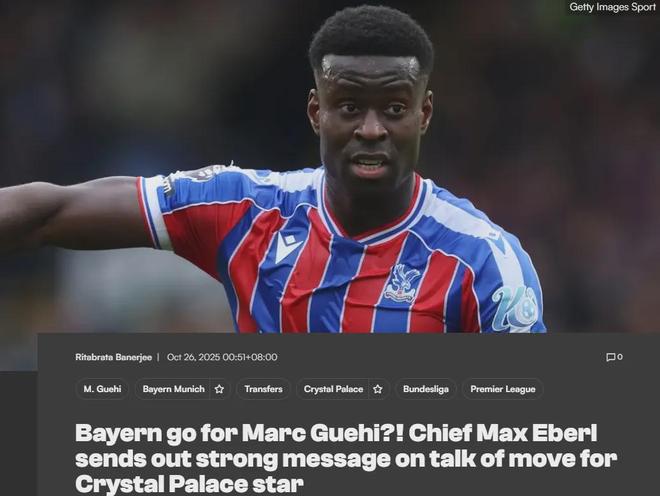 拜仁高管艾貝爾在接受DAZN采訪時暗示,他們最近的確在運作水晶宮中衛格伊。