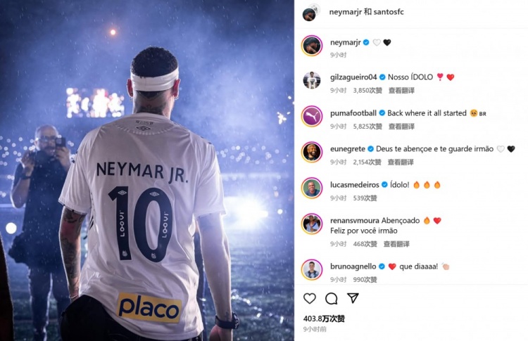 - 時隔12年後回歸!32歲內馬爾社媒曬照紀念回歸母隊桑托斯